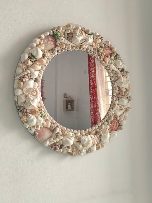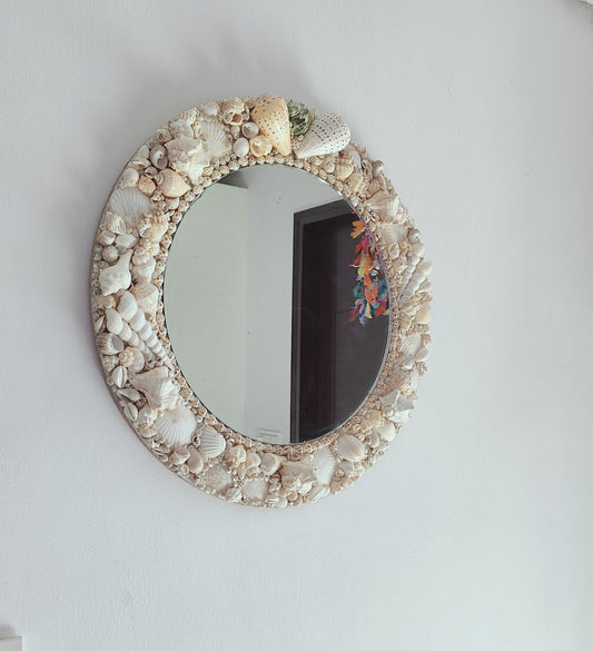 Handcrafted Seashell Round Mirror – Coastal Nautical Wall Décor 16inch