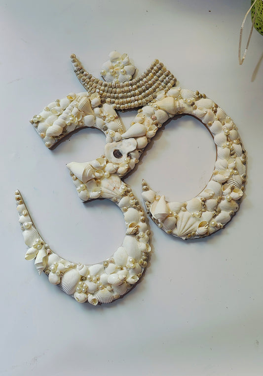 Handcrafted Seashell Om (ॐ) Wall Art – Spiritual & Decorative Piece